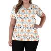 Damenmode V-Ausschnitt Kurzarm Overalls mit Taschen Print Tops Kleidung