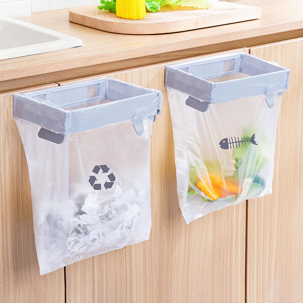 Folding Garbage Bag Organizer with Fixing Buckle Portable Garbage Holder Space-Saving for Kitchen Cabinets Doors Cupboards
