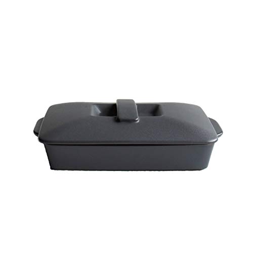 Mit Sorgfalt in Japan in Toki City, Präfektur Gifu, hergestellt, berühmt für seine Töpferwaren. In zwei Ausführungen erhältlich: flach und wellig. Erhältlich in zwei Farben: warmes Grau und Dunkelgrau. Nicht für die Verwendung auf Induktionskochfeldern geeignet. Körper: B216×T143×H33mm; Deckel + Körper: B216×T147×H55mm