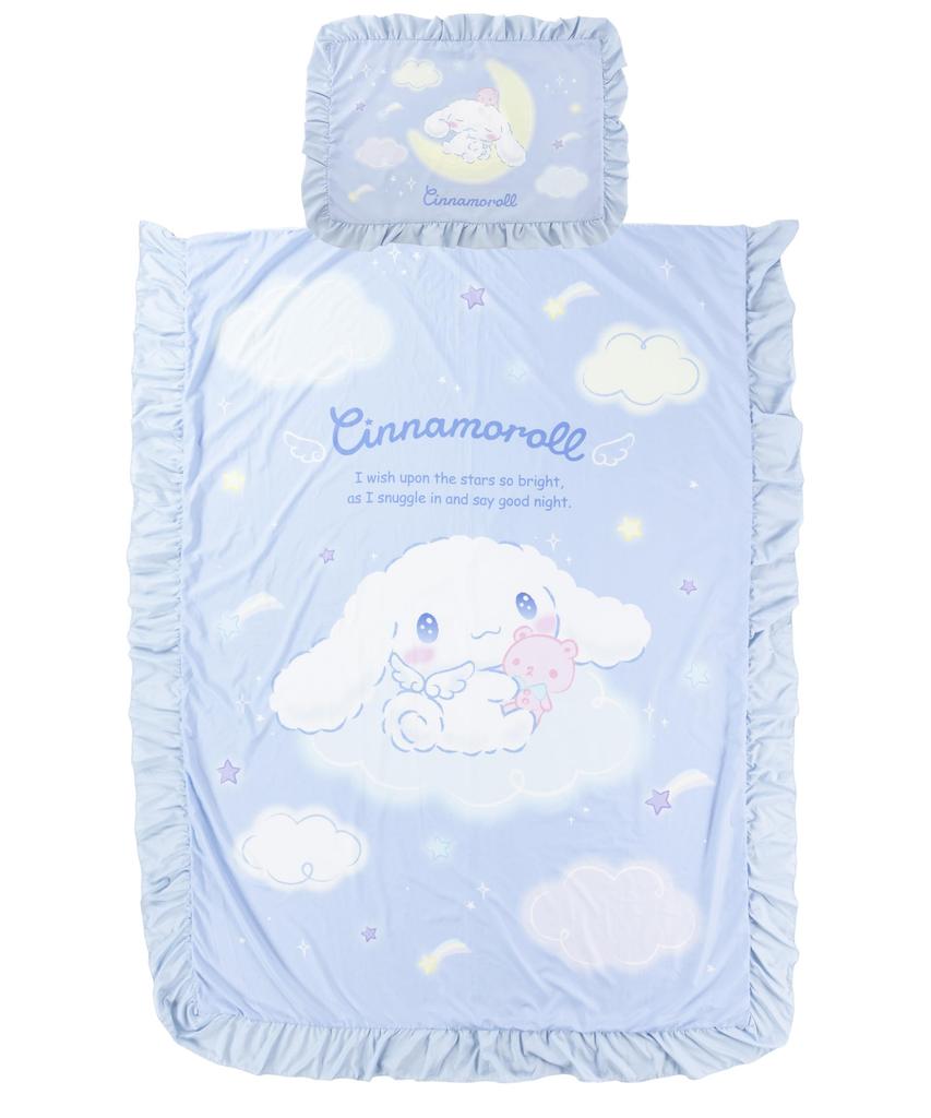 MORIPiLO (Morishita) Sanrio Bettbezug und Kissenbezug Set mit Rüschen, Einzelgröße (Cinnamoroll, Weicher Pfirsichhautstoff), Blau, 150x210cm, Niedliche Artikel