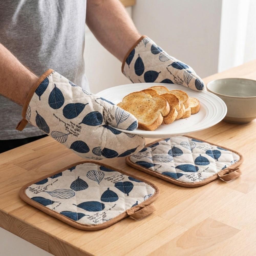 4 Stück Verbrühschutz Mikrowellenofen Handschuh Baumwolle Leinen Ofenhandschuhe und Topfhalter Kochen