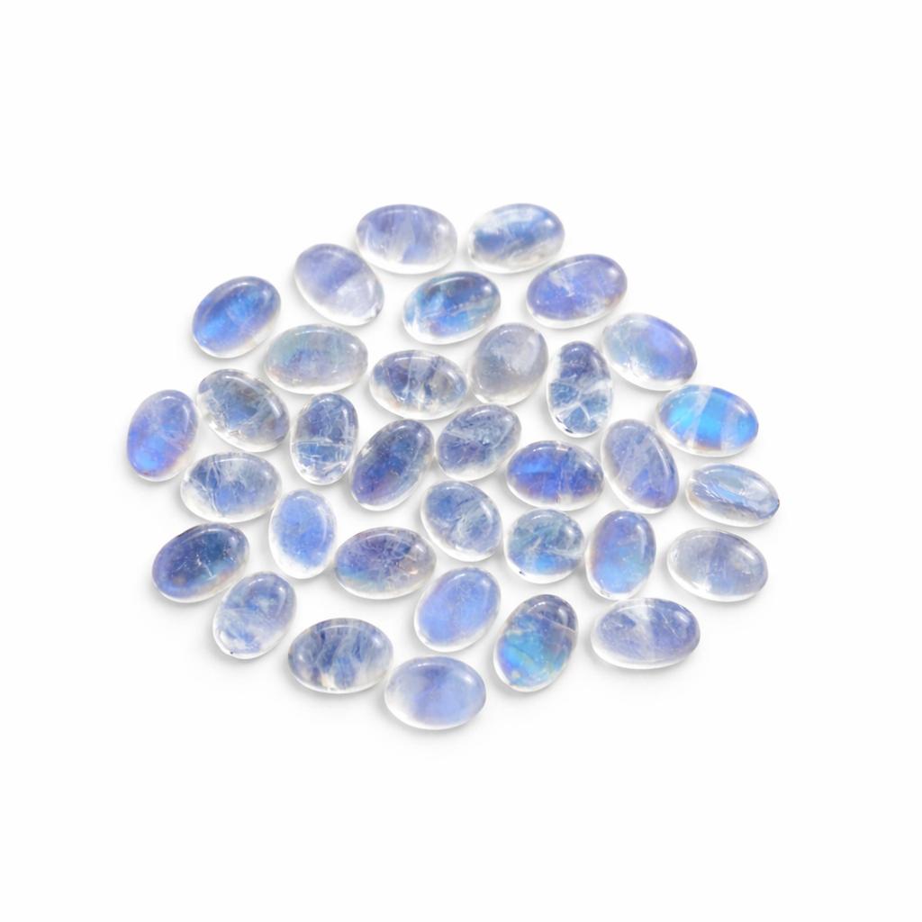 Natural Rainbow Moonstone Oval Cabochon – 6x4 mm Smooth Flat Back Gemstone for Jewelry Making