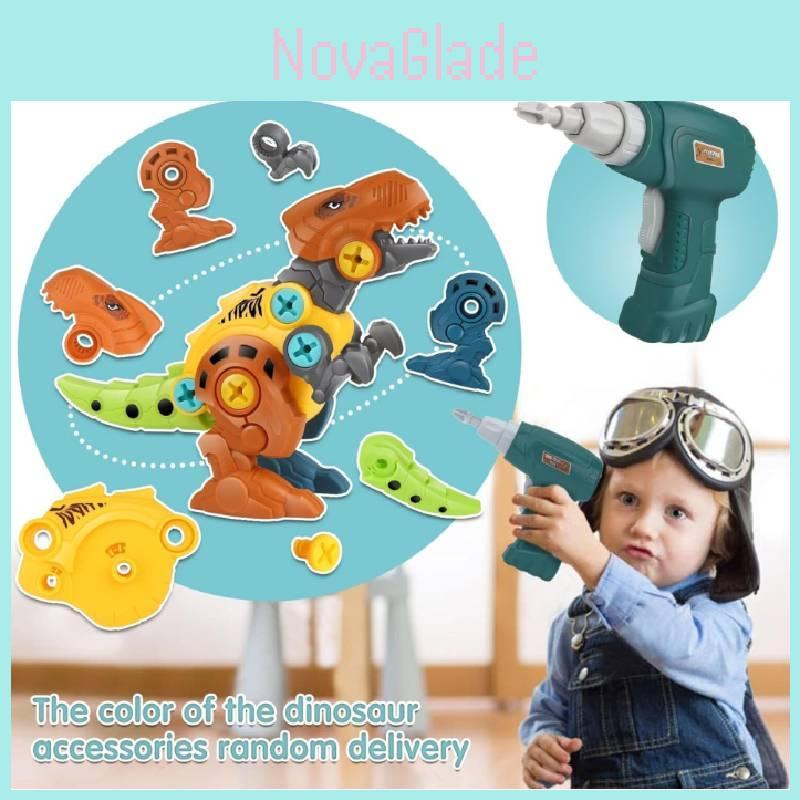 Fesselndes Dinosaurier-Baustein-Spielzeugset für Jungen mit elektrischem Bohrer und Schrauben für kreatives Spielen