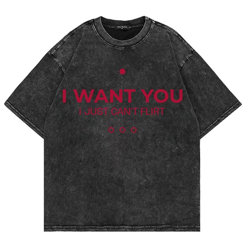 Baumwolle Vintage Gewaschen Ich will dich Ich kann einfach nicht Flirten T-Shirt Mode Männer/Frauen Lustiger Buchstaben Druck Locker Säurewäsche T-Shirts