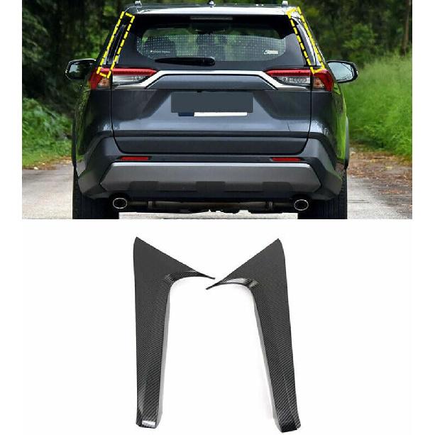Car Accessories Fit for Toyota RAV4 2019-2025 Exterior ABS Rear Spoiler Wing Side Beveled Window Sill Pillar Molding Cover Trim (Carbon Fiber) 2PCS