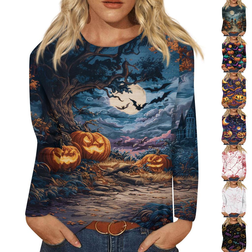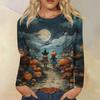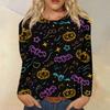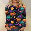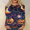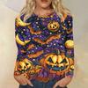 Modisches, lässiges Langarm-Oberteil mit Rundhalsausschnitt und Halloween-Print für Damen