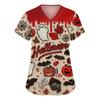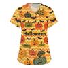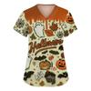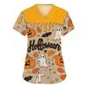 Damenmode V-Ausschnitt Kurzarm Arbeitskleidung mit Taschen Halloween bedruckte Tops