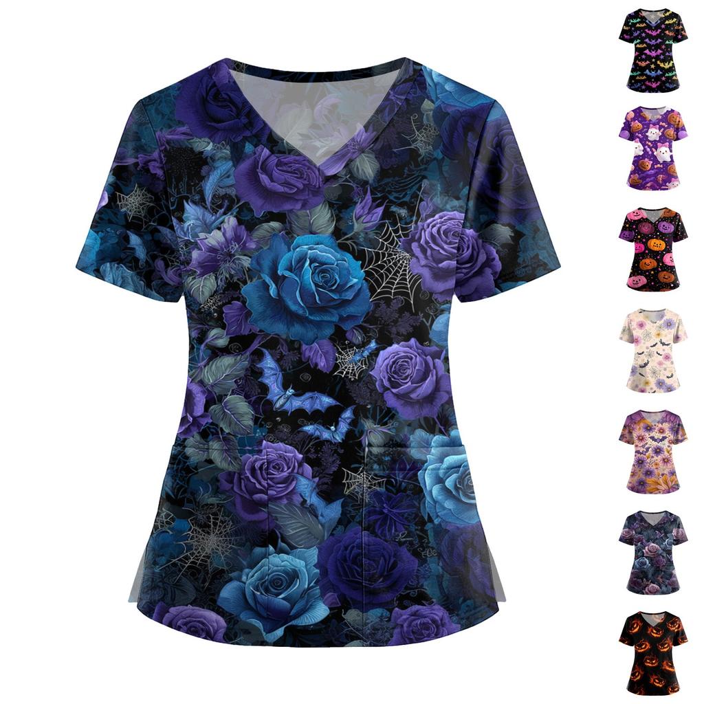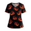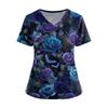 Damenmode V-Ausschnitt Kurzarm Overalls mit Taschen Print Tops Kleidung