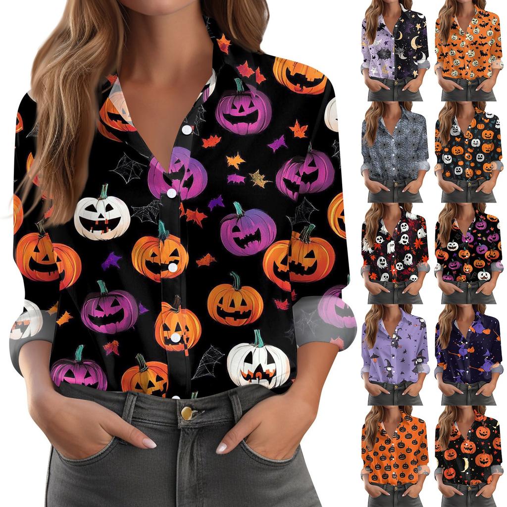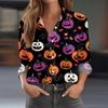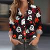 Damen Hemd Bluse Halloween Print Knopf Langarm Lässig Basic Hemdkragen Regulär Top
