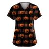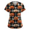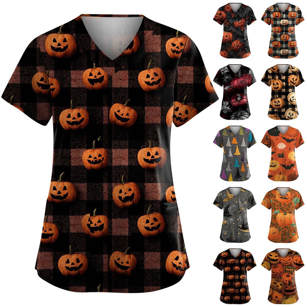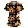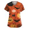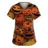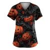 Damenmode V-Ausschnitt Kurzarm Overalls mit Taschen Halloween Bedruckte Oberteile Bekleidung
