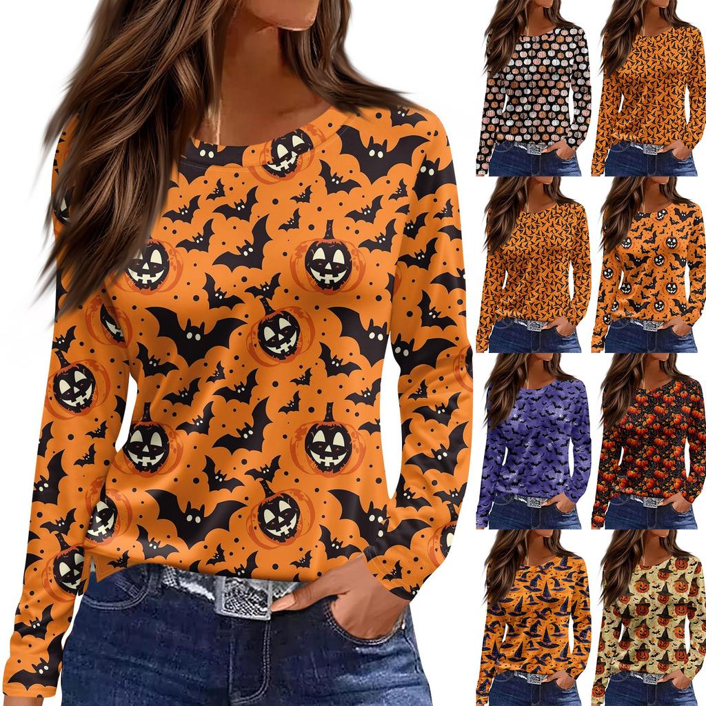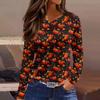 Damenmode Saumschlitz Lässig Halloween-Print Rundhals Langarm Oberteil