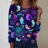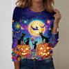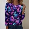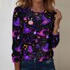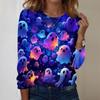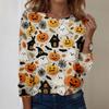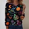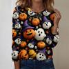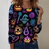 Damen Halloween bedrucktes rundhalsiges lockeres langärmeliges Oberteil