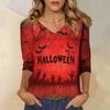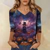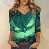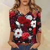 Damenoberteile Dreiviertelarmhemd V-Ausschnitt Lockeres Freizeitshirt Druck T-Shirt