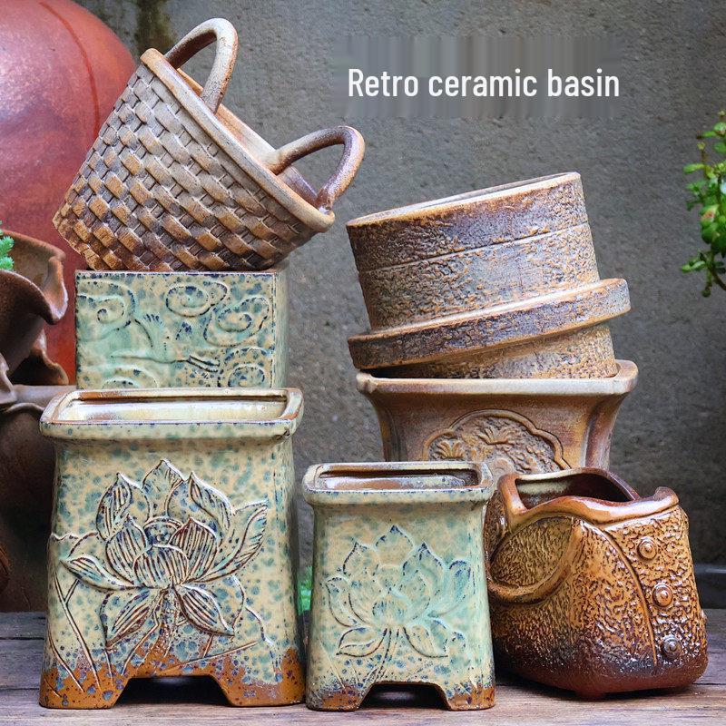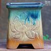 Handgefertigter unregelmäßiger quadratischer Keramik-Blumentopf für Sukkulenten - Pflanztopf mit großem Durchmesser für Mischbepflanzung