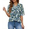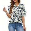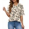 Damenmode Lässig Knopf Tasche Hemd Kurze Ärmel Druck Revers Oberteil