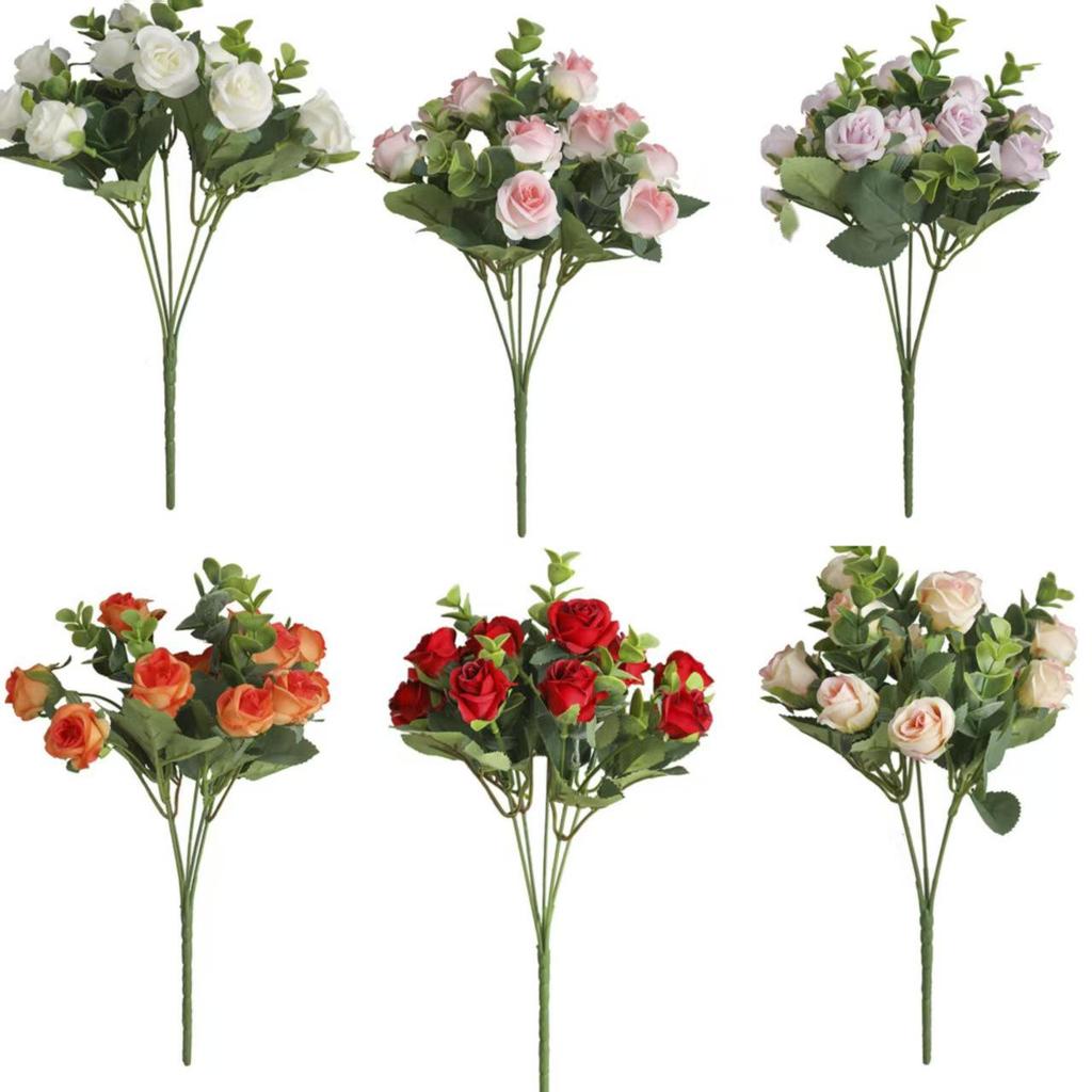 Künstlicher 5-Zweig-Rosen-Eukalyptus-Strauß für Heimdekoration und Foto-Requisiten