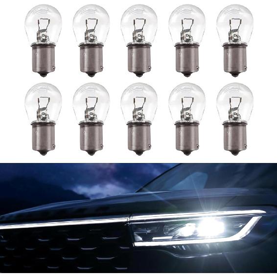 Product Specifications: You will receive 10 car brake light bulbs. This bulb model is 1141 12V 21W BA15S, double lamp with high and low legs, 2 contacts. It can be used as brake lights, driving lights, turn signals, reflectors, and tail lights. Light weight, miniature, small heat loss, extended service life.