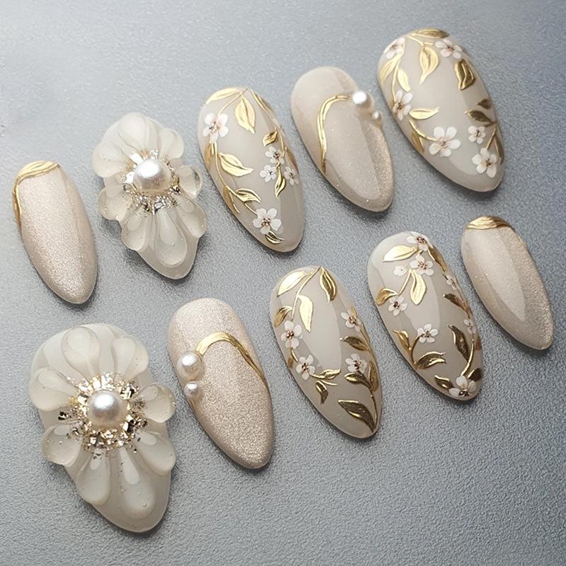 Europäische Doppelschicht Perlen & Fünfblättrige 3D Florale Nagelkunst-Aufkleber - Geprägte Vergoldung Bestseller