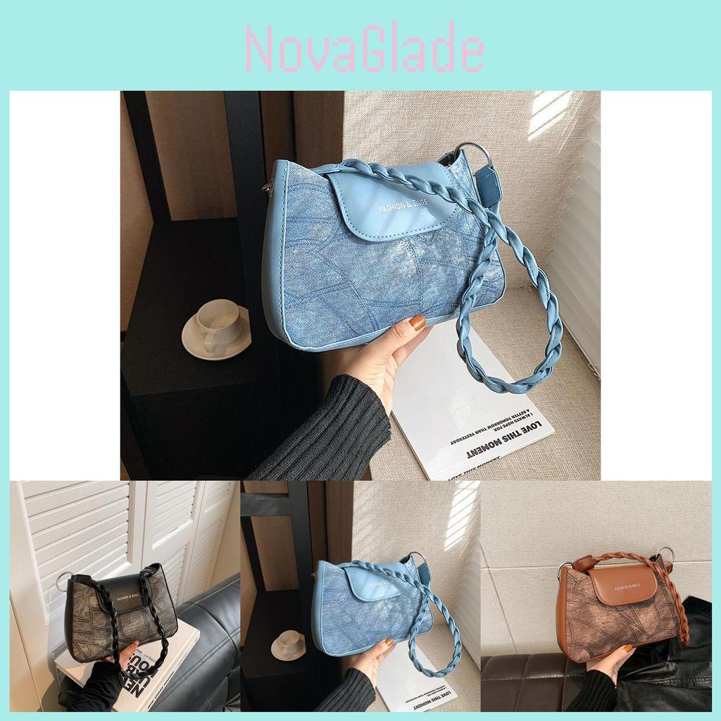 Trendy Retro Blue Underarm Bag For Women Fashionable Medium Sized Handbag Perfect For Street Style