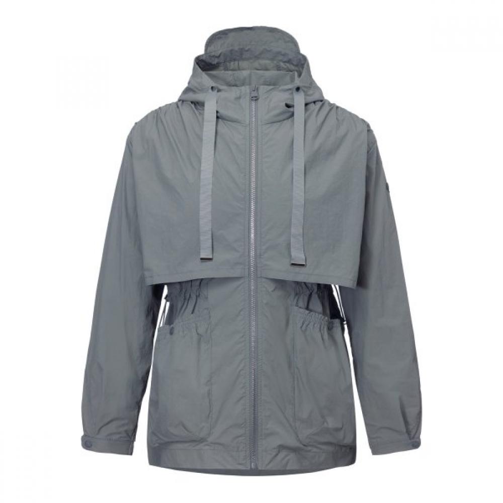 The Women's Mid-Length Wind Jacket SOMNIUM 26 features a waist string and light string detailing to create a feminine silhouette. It allows for various silhouette adjustments through the string, made from eco-friendly recycled materials that provide a compact and lightweight feel. The hood and shape adjustment make it a practical item for unpredictable weather. We suggest pairing it with BARREL TAPERED PANTS.