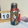 Large Capacity Rose Peony Retro Thermos Cup with Lanyard and Tea Separator