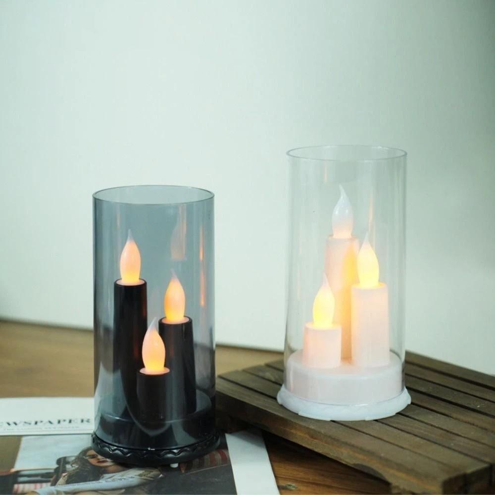 3 in 1 LED Flameless Candle Flickering Taper Electronic Candle Light Three-Wick With Lampshade Flameless Pillar Candle