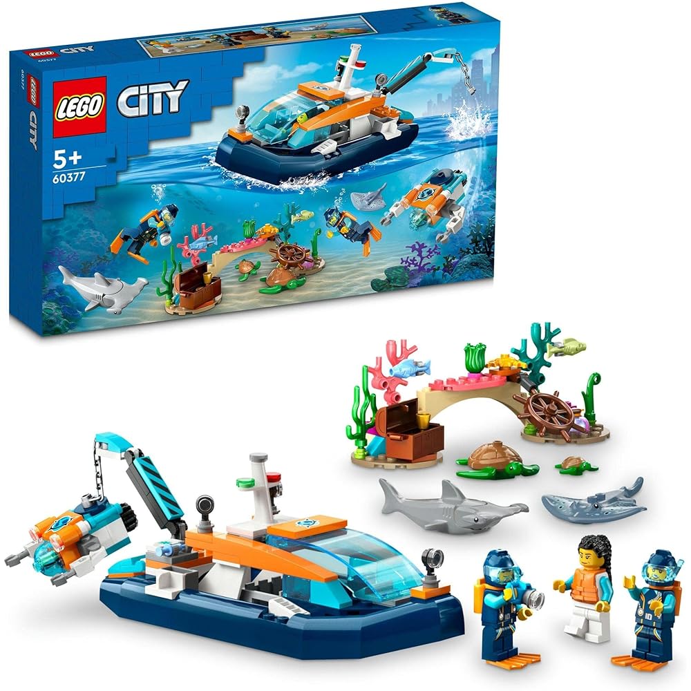 LEGO City Exploration Diving Boat Toy Building Set for Kids Ages 5-8 with Blocks and Vehicles