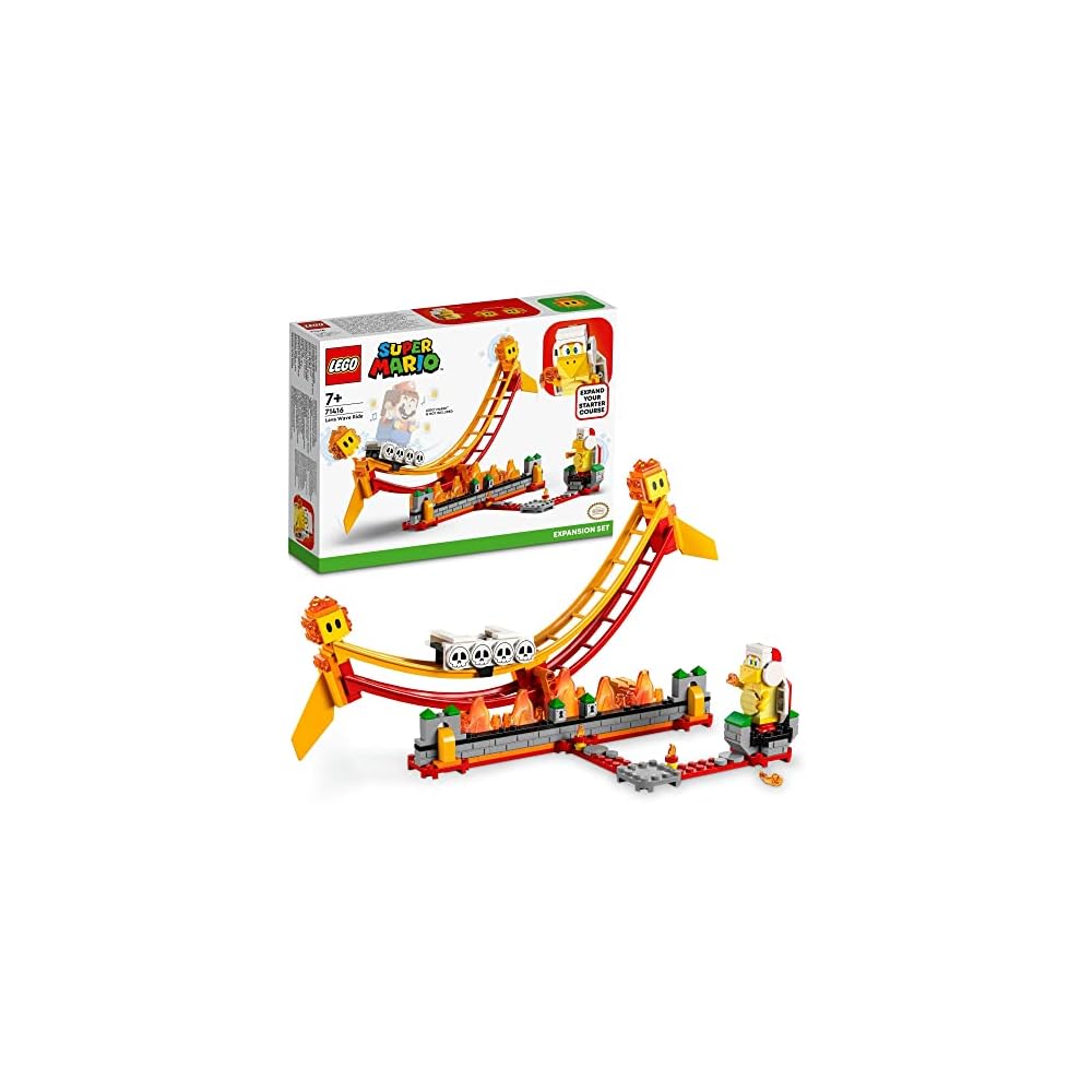 Ride the Lava 窶 LEGO Mario, LEGO Luigi, or LEGO Peach (figures sold separately) ride the lava lift back and forth, knocking down the bubbles on either side without falling off to collect coins.