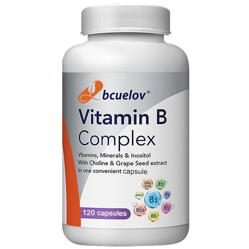 Bcuelov Complex Vitamin B Capsules Choline Grape Seeds Boost Energy 120 Vegetarian Capsules