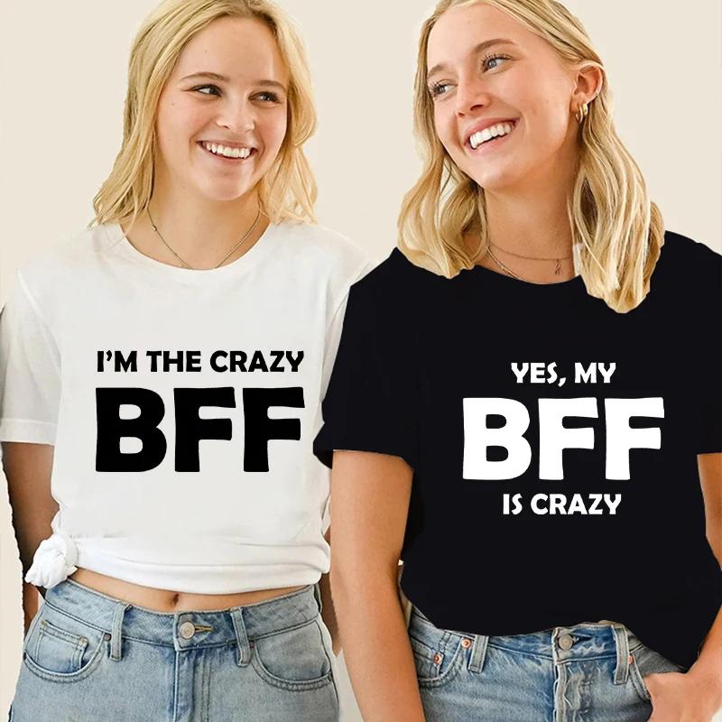 BFF Unisex T-Shirt Vintage Tee Lockere Oberteile Crazy BFF Lustiges Geschenk Beste Freunde Geburtstag T-Shirt für Unisex Sommer Harajuku T-Shirts