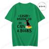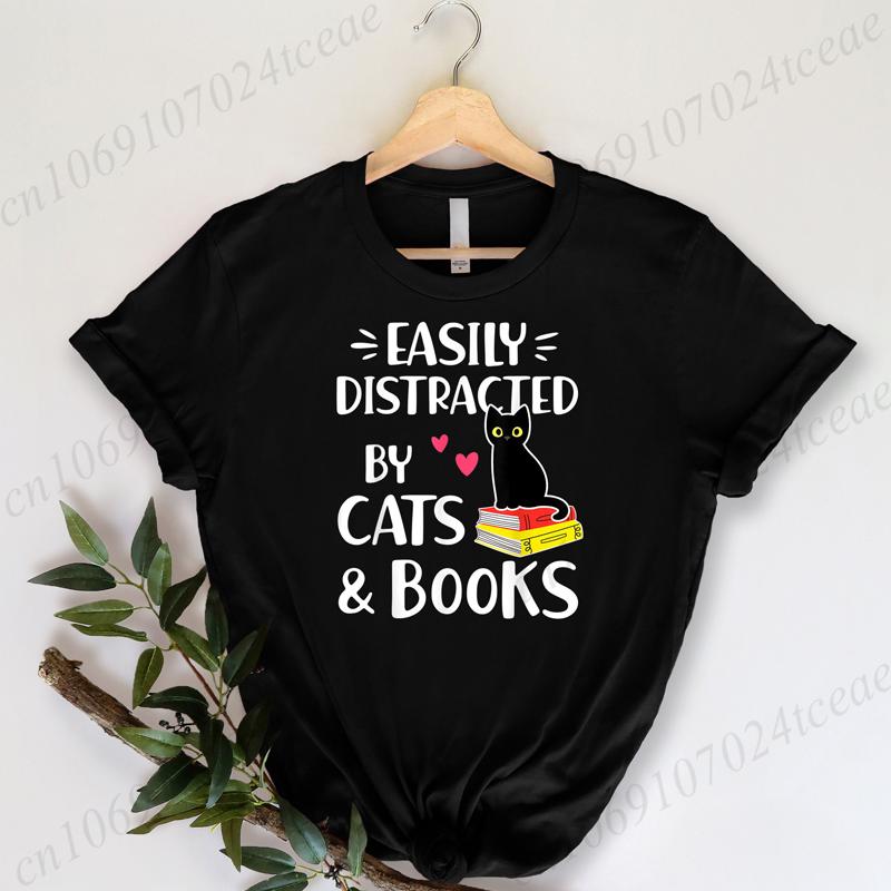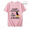 Short Sleeve Tshirt for Unisex Tee Clothes Easily Distracted By Cats and Books Tee Tops Book Reader Top Y2K Unisex Casual Clothes