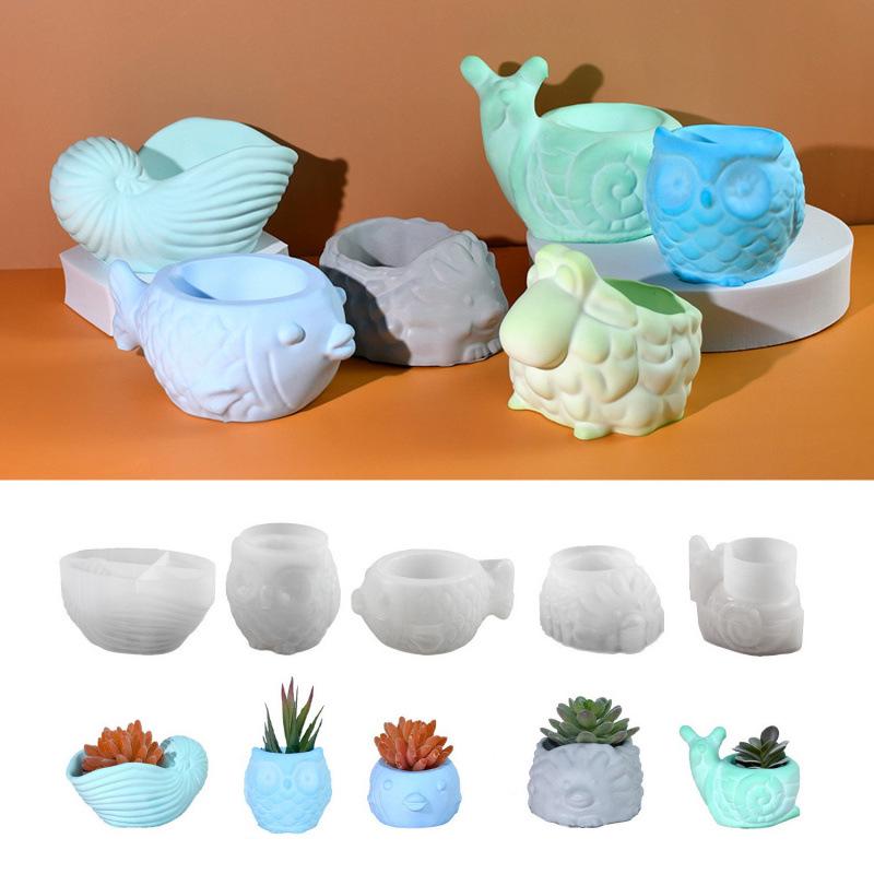 DIY Tiervasen-Serie: Schnecke, Eule, Muschel, Igel, Kugelfisch Sukkulenten Pflanzgefäß Epoxidharz Form