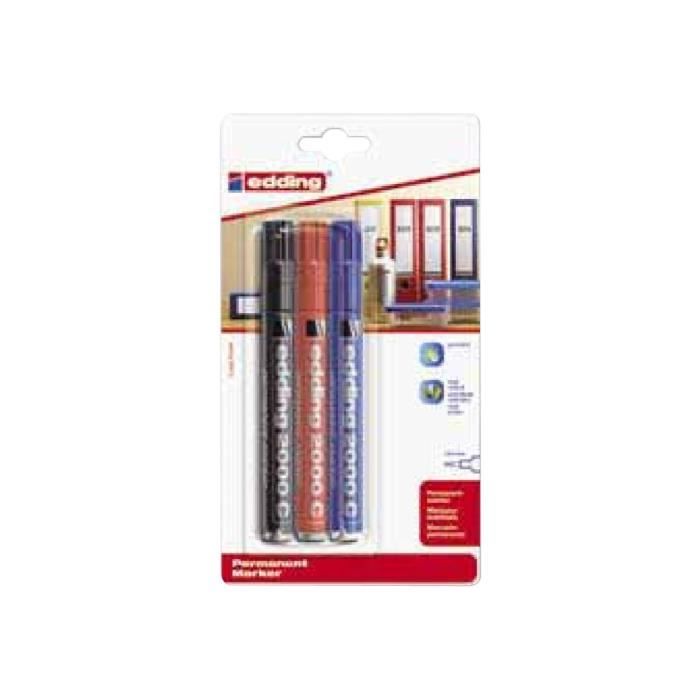 Marqueur Permanent - edding - 2000 C - Indélébile - Pointe 1.5-3 mm - Noir/Rouge/Bleu