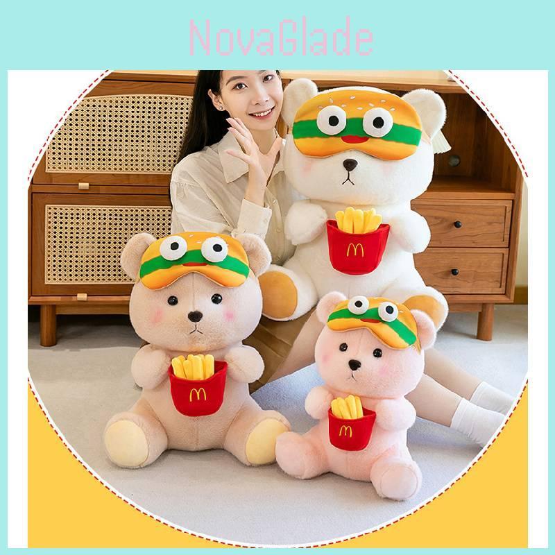Adorable Large Burger And Fries Bear Plush Toy Cute Stuffed Animal Pillow Gift