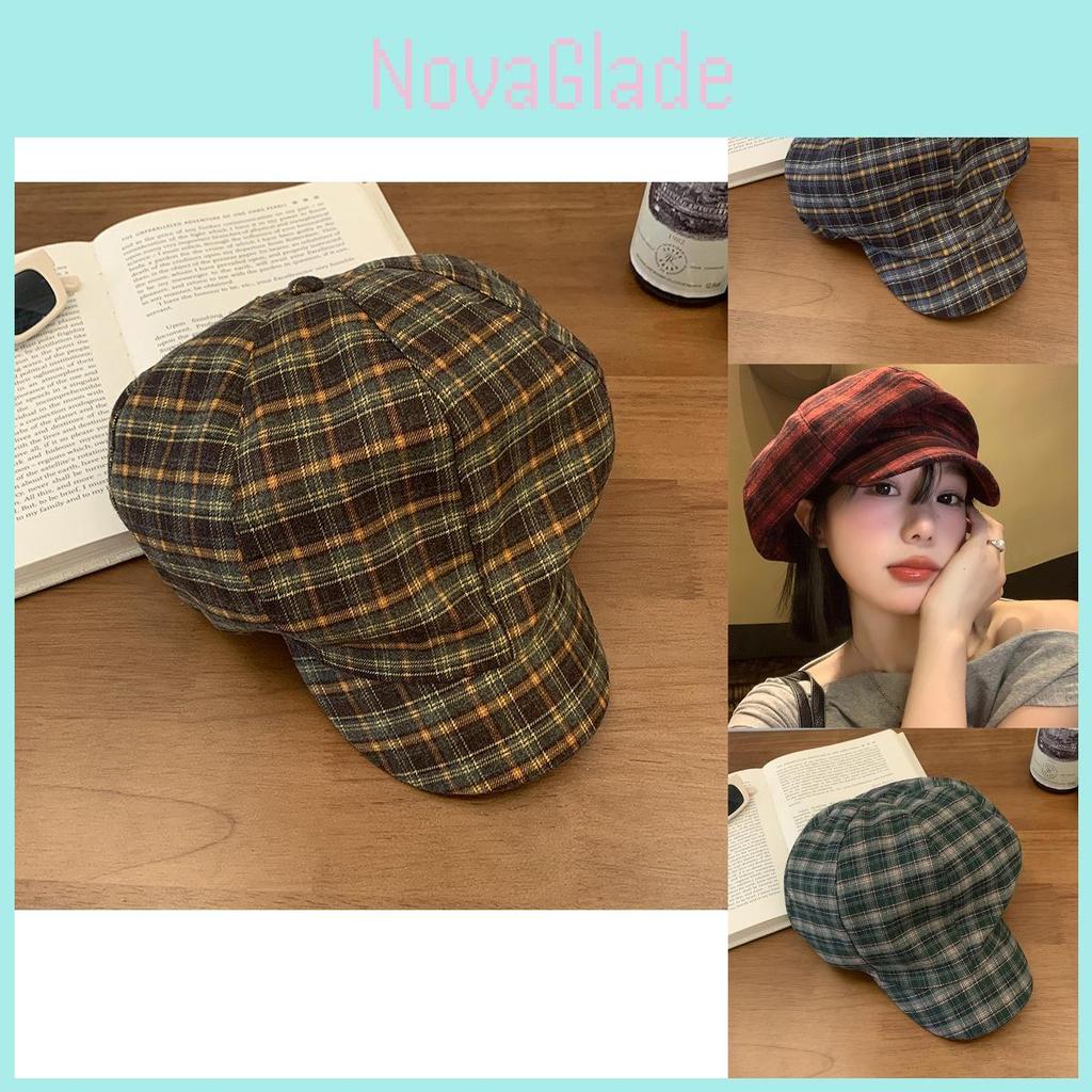 Vintage Red Plaid Cloud Beret Hat For Women Summer Casual Fashion Accessory