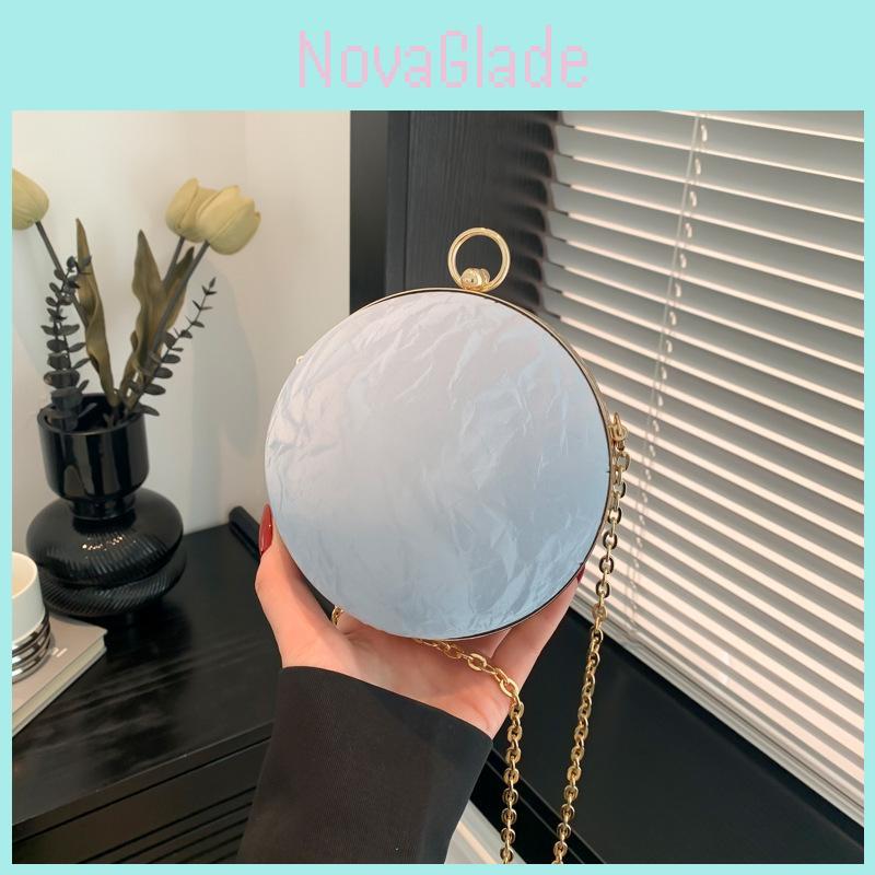 Chic Design: This elegant round handbag adds a touch of sophistication to any outfit with its sleek and trendy street style.