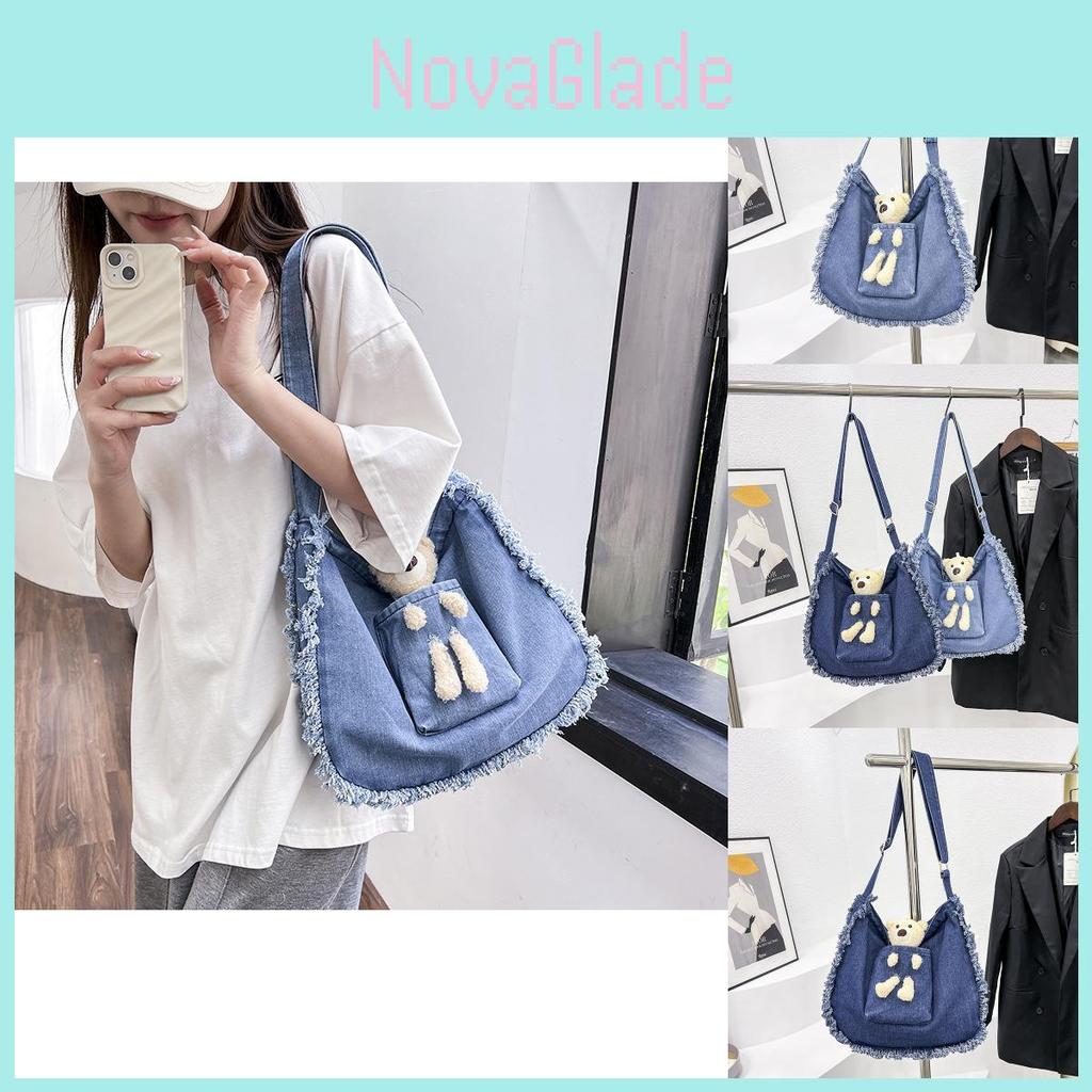 Introducing our latest 2023 New Arrivalthe Spacious Casual Denim Tote Chic Commuter Bag! This stylish and versatile bag is designed to be the perfect accessory for your daily life, seamlessly blending street style fashion with practicality. Available in two stunning colors, Deep Blue Bear and Light Blue Bear, this denim tote is set to become an indispensable part of your wardrobe.