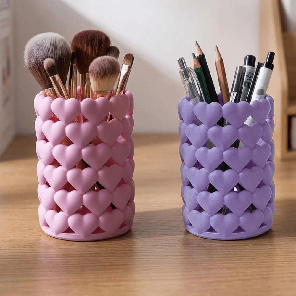 Cute 3D Printed Pencil Cup Hollow Desktop Storage Box Novelty Heart-shaped Pen Holder Vanity Table