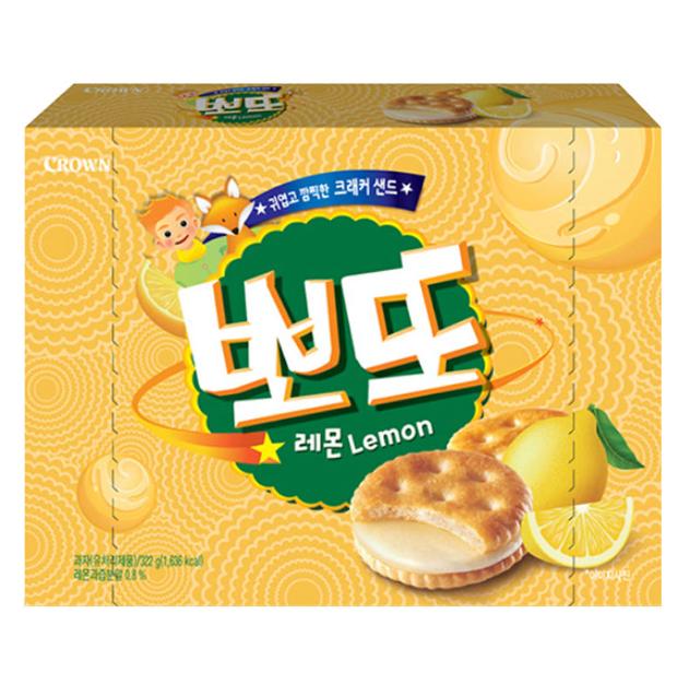 Crown Ppoto Lemon Sandwich Biscuits 322g Korean Lemon Cream Cookies