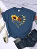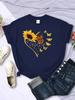 Einfache Damen T-Shirts Sonnenblumen Schmetterlinge Herz-Aufdrucke Kurzarm Bequem Weich O-Ausschnitt Oberteile Sommer Lässig Damenkleidung