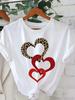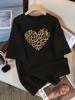Leopard Love Heart Printed Tshirt Short Sleeve Round Neck Casual Top Summer and Spring Womens Clothing Aesthetic Graphic Y2K