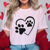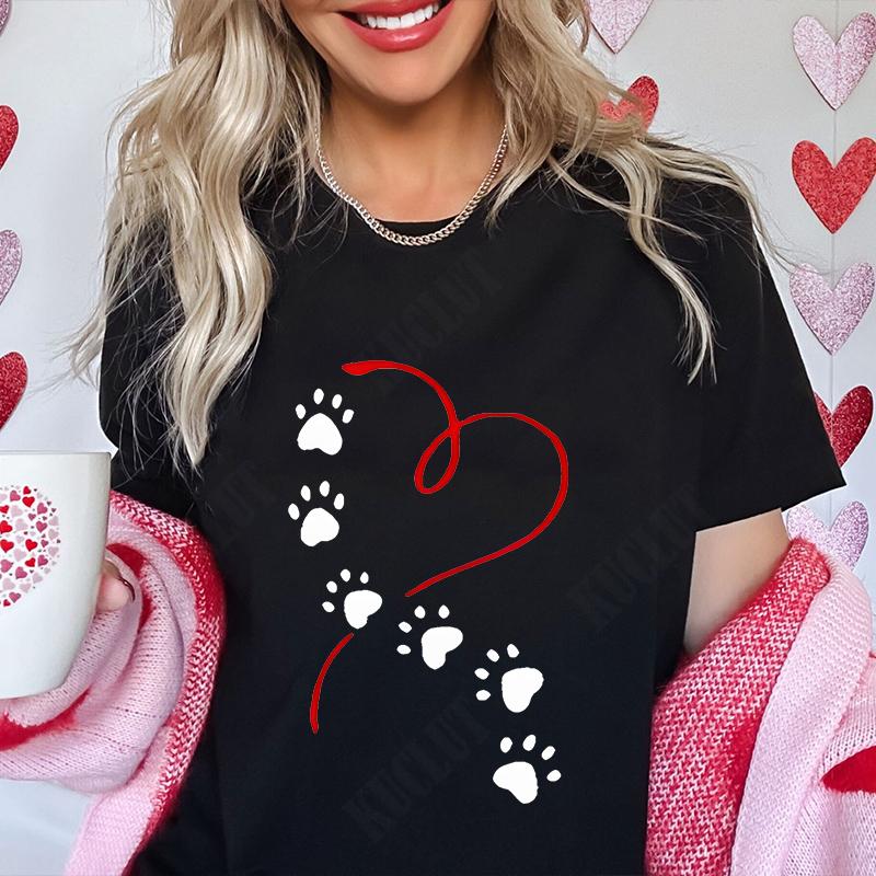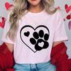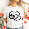 Funny Heart Dog Paw Print Women Tshirts Fashion Summer Ladies Tshirts Short Sleeves Clothes Love Heart Fashion Casual Shirts