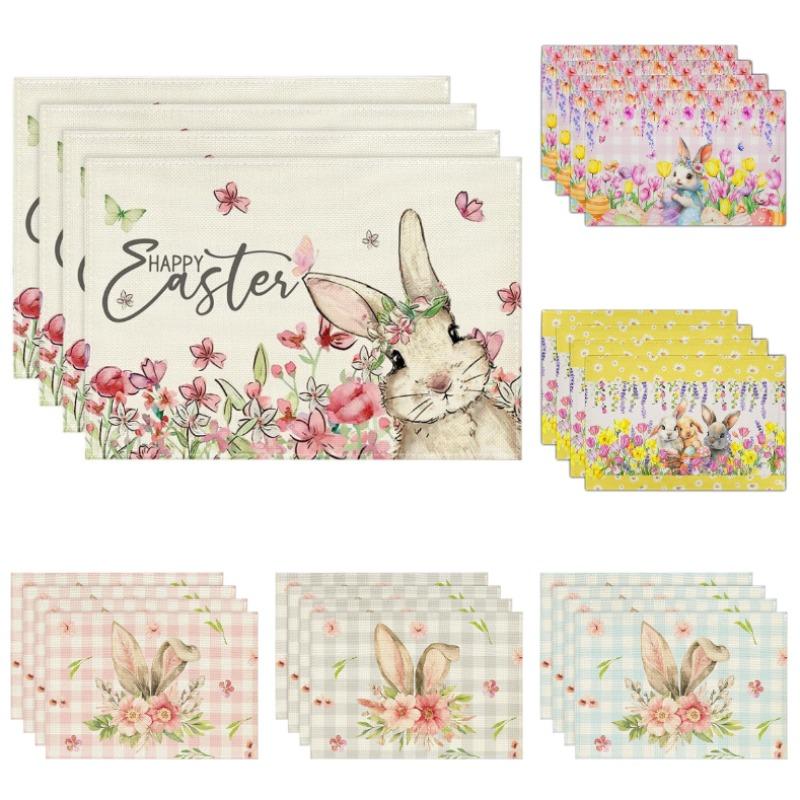 Easter Bunny Placemats Watercolor Floral Table Decor Non-Slip Heat Resistant Dinner Mat Spring Holiday Home Decor Tableware Pad