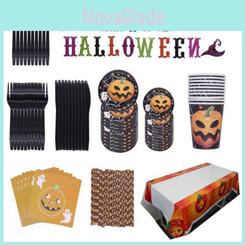 Halloween Party Dekorationszubehör einschließlich Kürbis-Tischdecke und Strohhalme**