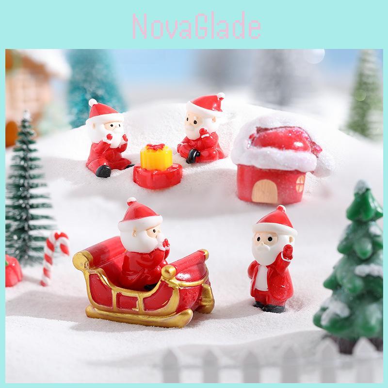 Entzückendes Weihnachts-Harzfiguren-Set mit Weihnachtsmann und Mini-Schneeszenen-Zubehör