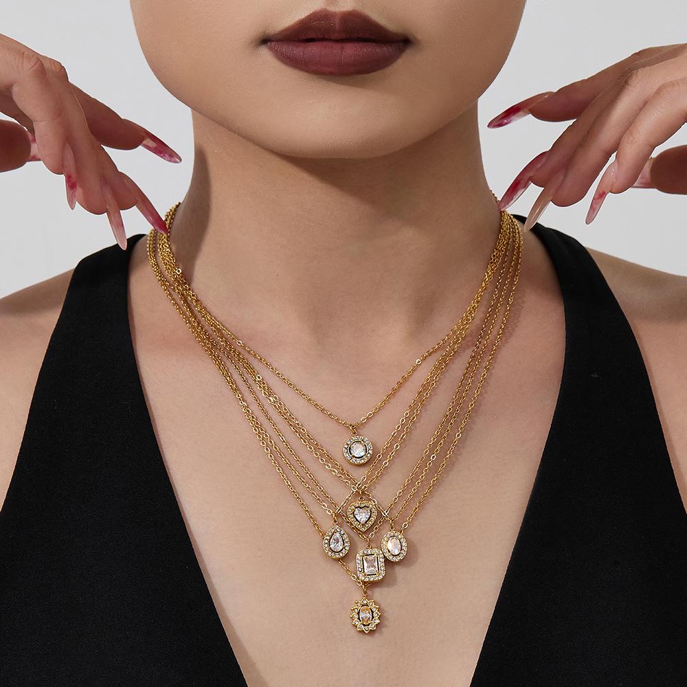 Douyin Trend Wassertropfen Strass Zirkon Anhänger Halskette & Ohrringe Damen Set, 18 Karat Vergoldeter Edelstahl.