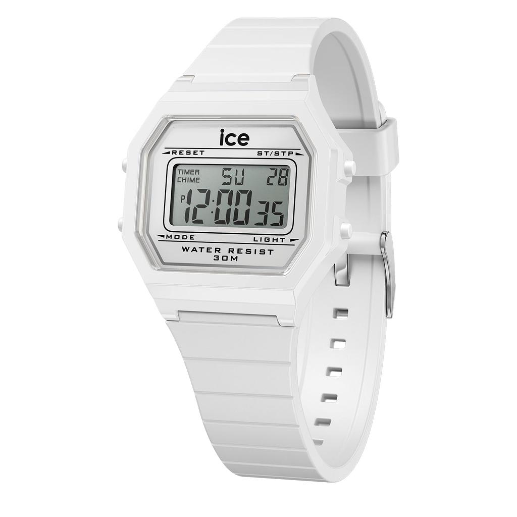 Ice-Watch's new standard digital watch, the "Digit Retro," features a streamlined, octagonal retro design, accented with a pop-colored strap and matching bezel and print for a modern twist. The case is made of a lightweight, thin plastic plate, the crystal is made of transparent and impact-resistant acrylic glass, and the strap is made of the brand's signature soft silicone rubber that feels comfortable against the skin. In addition to displaying the time, date, and day of the week, it also includes a stopwatch, alarm, backlight, and dual time functions.