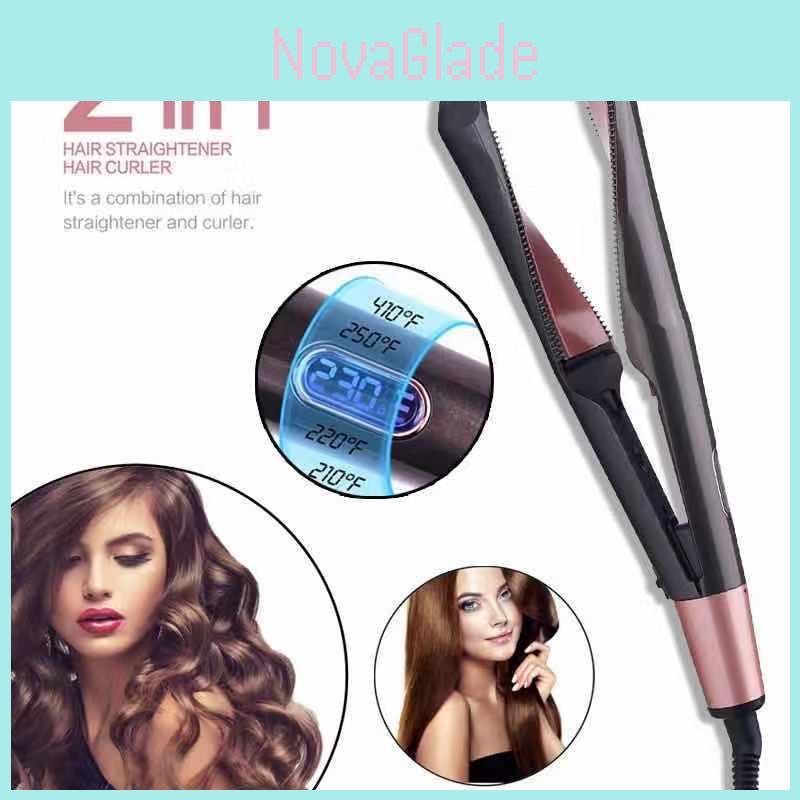 Elektrischer Turmalin-Keramik-Lockenstab und Glätteisen für trockenes Haar 1-2 Minuten Styling