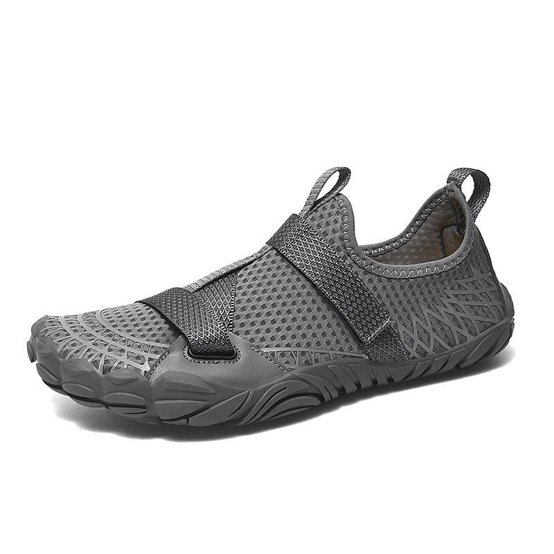 Erleben Sie unübertroffenen Komfort und Vielseitigkeit mit diesen innovativen Fünf-Finger-Wasserschuhen, die für eine Vielzahl von Aktivitäten entwickelt wurden, darunter Strandbesuche, Bachwanderungen, Surfen, Angeln, Yoga und Fitnessübungen.. Gefertigt mit einem atmungsaktiven Mesh-Futter und einer flexiblen Gummisohle, bieten diese Schuhe hervorragenden Halt und schnelle Trocknungseigenschaften, was sie perfekt für nasse und trockene Umgebungen macht.. Das leichte Netzstoffobermaterial sorgt für einen eng anliegenden und sicheren Sitz und verbessert Ihre Leistung, indem es natürliche Bewegungen und eine hohe Reaktionsfähigkeit auf verschiedenen Untergründen ermöglicht.. Egal, ob Sie durch Wasser paddeln oder an Land aktiv sind, diese Wasserschuhe sind der ideale Begleiter für Ihre Abenteuer.