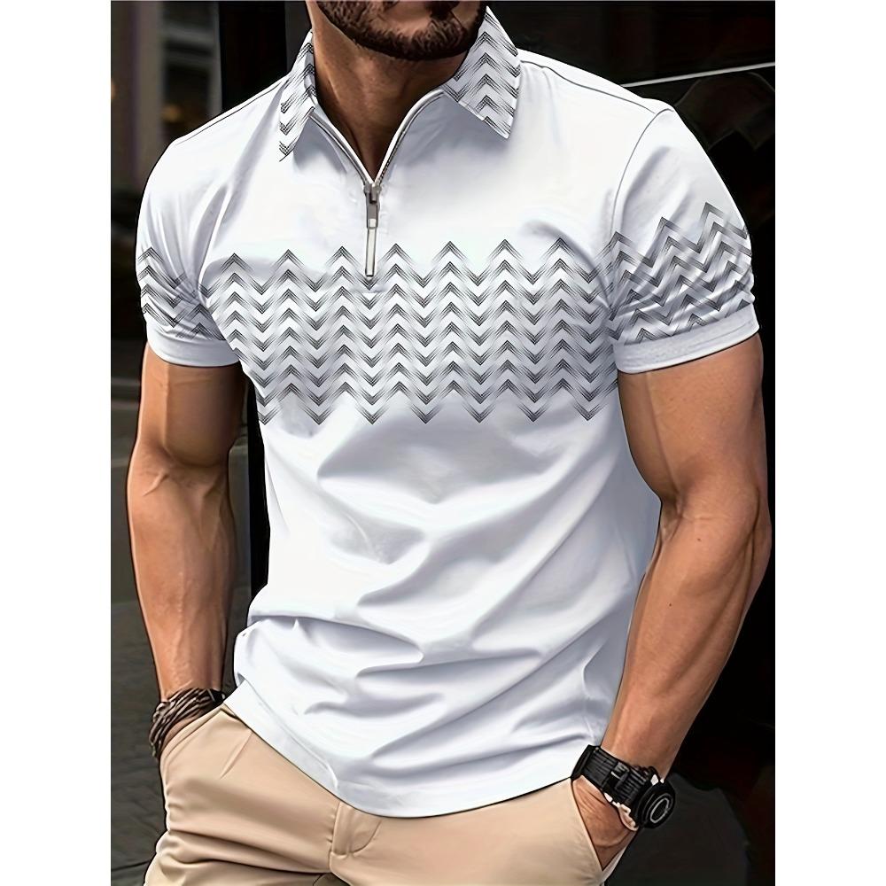 The Summer Men's Zippered Short-sleeved POLO Shirt Features Street Fashion and Comfort with 3D Pattern Printing